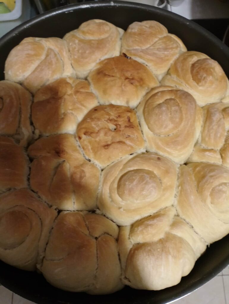 Εφόσον έχουμε ζυμώσει κόβουμε σε ίσα μέρη την ζύμη για να φτιάξουμε όσα ψωμάκια θέλουμε και τα αλείφουμε με το χέρι μας με το υπόλοιπο λάδι για να μην ξεραθεί η ζύμη. Τα τοποθετούμε στο ταψί (αντικολλητικό κατά προτίμηση ή χρησιμοποιήστε αντικολλητικό χαρτί για να μην κολλήσει το ψωμί). Τα βάζουμε στον φούρνο και ανάβουμε τον φούρνο στους 30 βαθμούς Κελσίου για να αφήσουμε το ψωμί μας να φουσκώσει. Προσοχή στους 30 και όχι παραπάνω. Ο φούρνος θα γίνει απλά χλιαρός σαν να το έχουμε βάλει το ψωμί δίπλα στο καλοριφέρ. Μετά από περίπου 1 ώρα θα δούμε το ψωμί μας να έχει γίνει διπλό (να έχει φουσκώσει) . Ψήνουμε το ψωμί μας στους 180 πάνω κάτω και δεν ανοίγουμε τον φούρνο παρά μόνο όταν το ψωμί μας έχει γίνει ροδοκόκκινο, έχει ψηθεί από επάνω δηλαδή. Εάν το ανοίξουμε πριν ψηθεί το ψωμί μας θα πέσει , θα ξεφουσκώσει δηλαδή και δεν θα γίνει καλό. Σε περίπου μια ώρα ψήσιμο το ψωμί θα έχει ψηθεί. Το βγάζουμε από τον φούρνο και ξεχωρίζουμε τα ψωμάκια που έχουμε φτιάξει και τα γυρίζουμε από εκεί που είναι η ψίχα τους τα ξαναβάζουμε στον φούρνο στο 100 για μερικά λεπτά μέχρι το ψωμί να σταματήσει να έχει υγρασία εσωτερικά. Αφού ψηθεί το βγάζουμε από τον φούρνο.